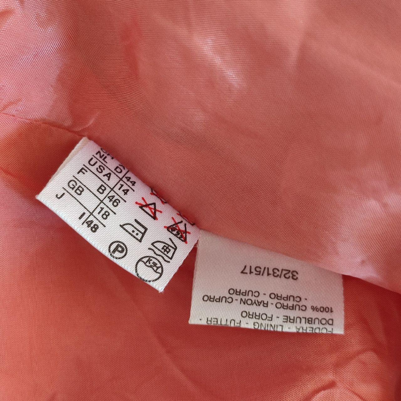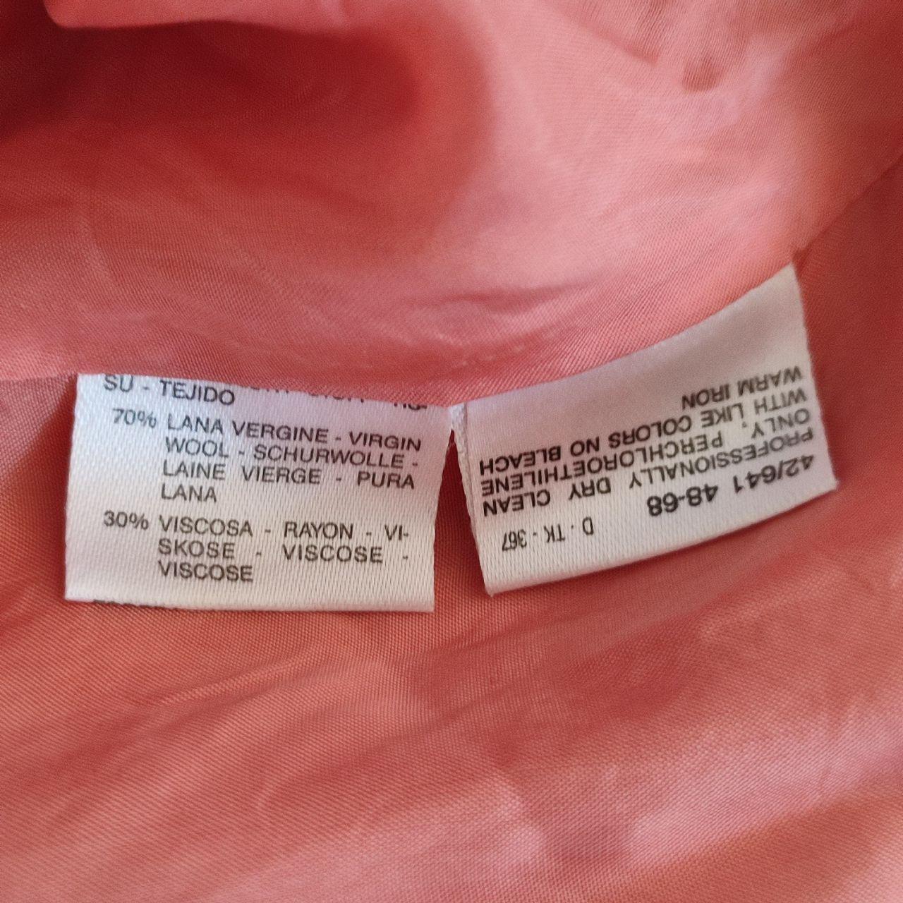 Blazer Max Mara, in condizioni molto buone, color pesca. taglia 44, composta al 70% in lana e al 30% in viscosa. Presenta 3 tasche con un taglio a filetto dritto, una è finta e 4 bottoni frontali che permettono la chiusura del capo. Ha 3 bottoni nel polso per manica. Fabbricata in Italia. Le spalle sono leggermente imbottite.